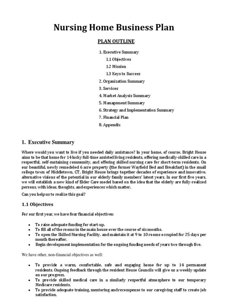 Bright House offers a different management structure from that of the typical hospital-model nursing home. Sister Anne Virginie Grimes Health Center New Haven. Nursing Home Business Plan Marketing Plan How To Guide and Funding Directory.